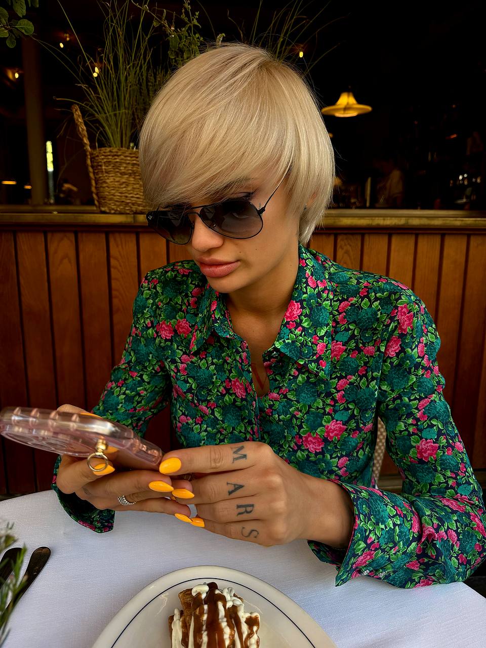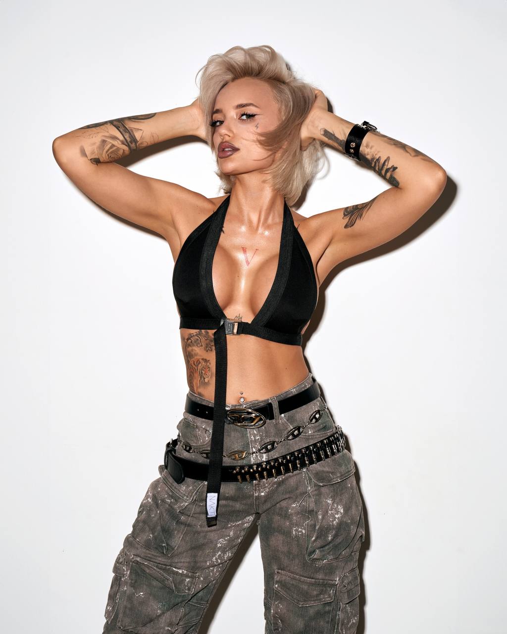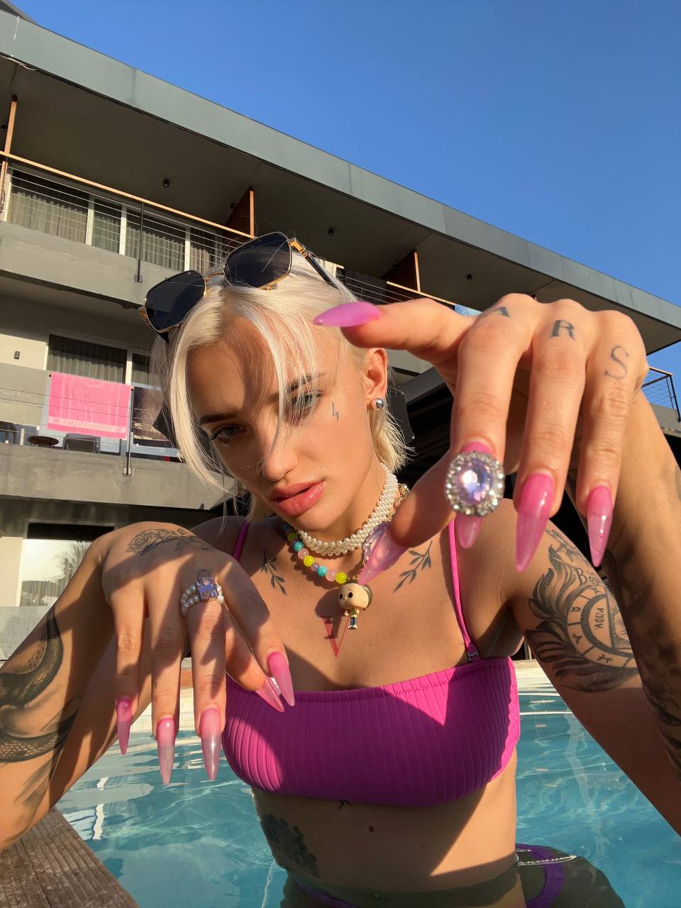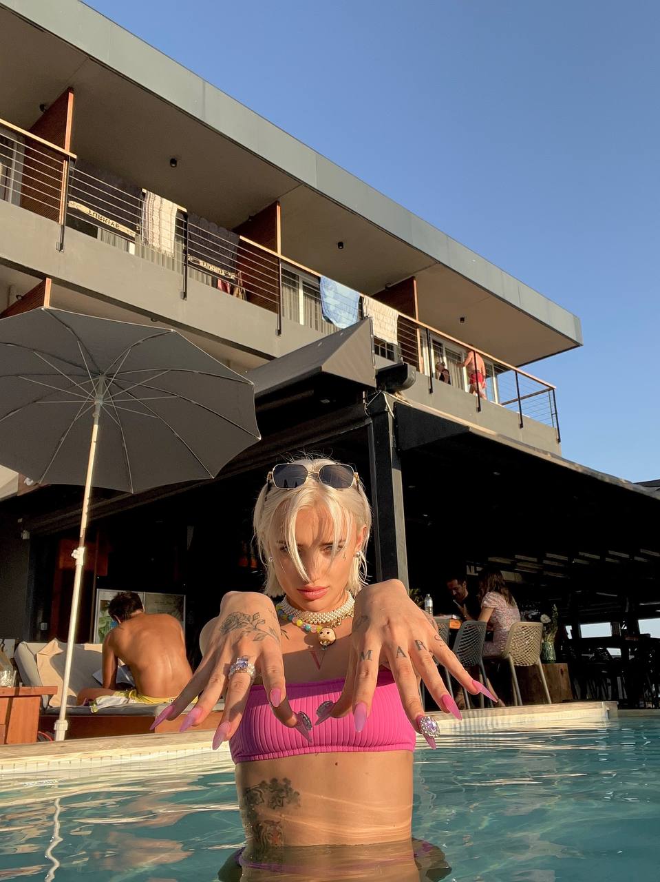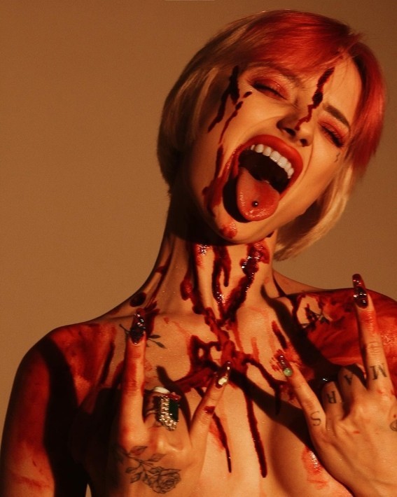 - Марсиага привлекает внимание публики своей экзотической внешностью, которую подчёркивает яркой окраской волос и татуировками.