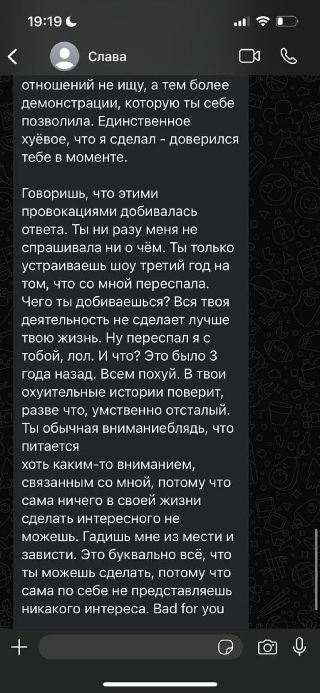 Сам Вячеслав отреагировал в своём стиле: с иронией и вызовом. Он заявил, что его не волнует мнение публики, и если кому-то интересно разглядывать «его задницу» — пусть смотрят, лишь бы слушали треки. Таким образом, даже слив стал частью его публичного образа — вызывающего, анархичного и антигламурного.